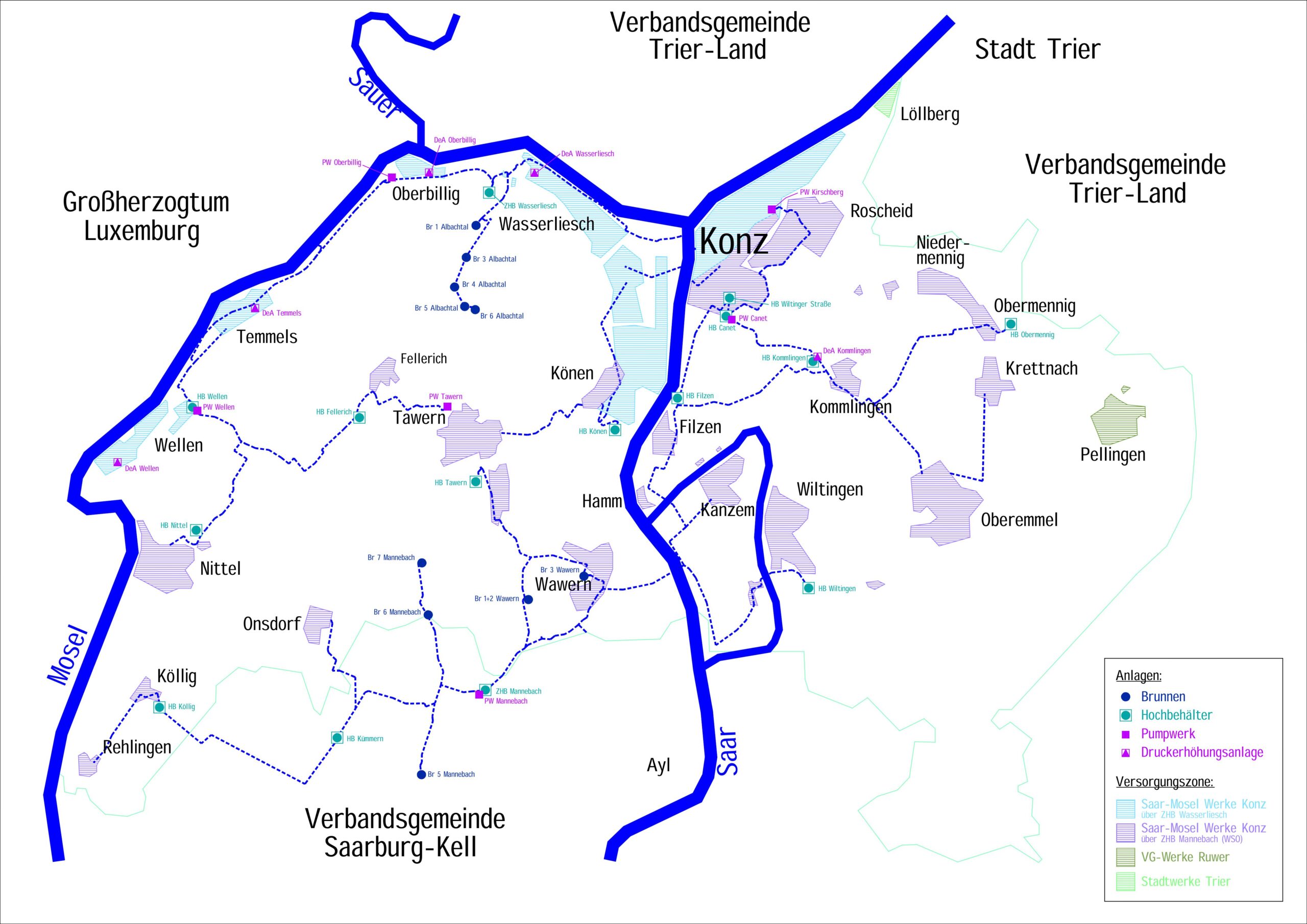 Die Saar-Mosel Werke Konz AöR betreibt und unterhält ein rund 256 km langes Versorgungsnetz.