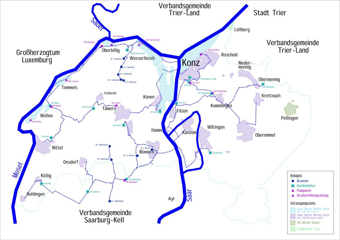 Die Saar-Mosel Werke Konz AöR betreibt und unterhält ein rund 256 km langes Versorgungsnetz.